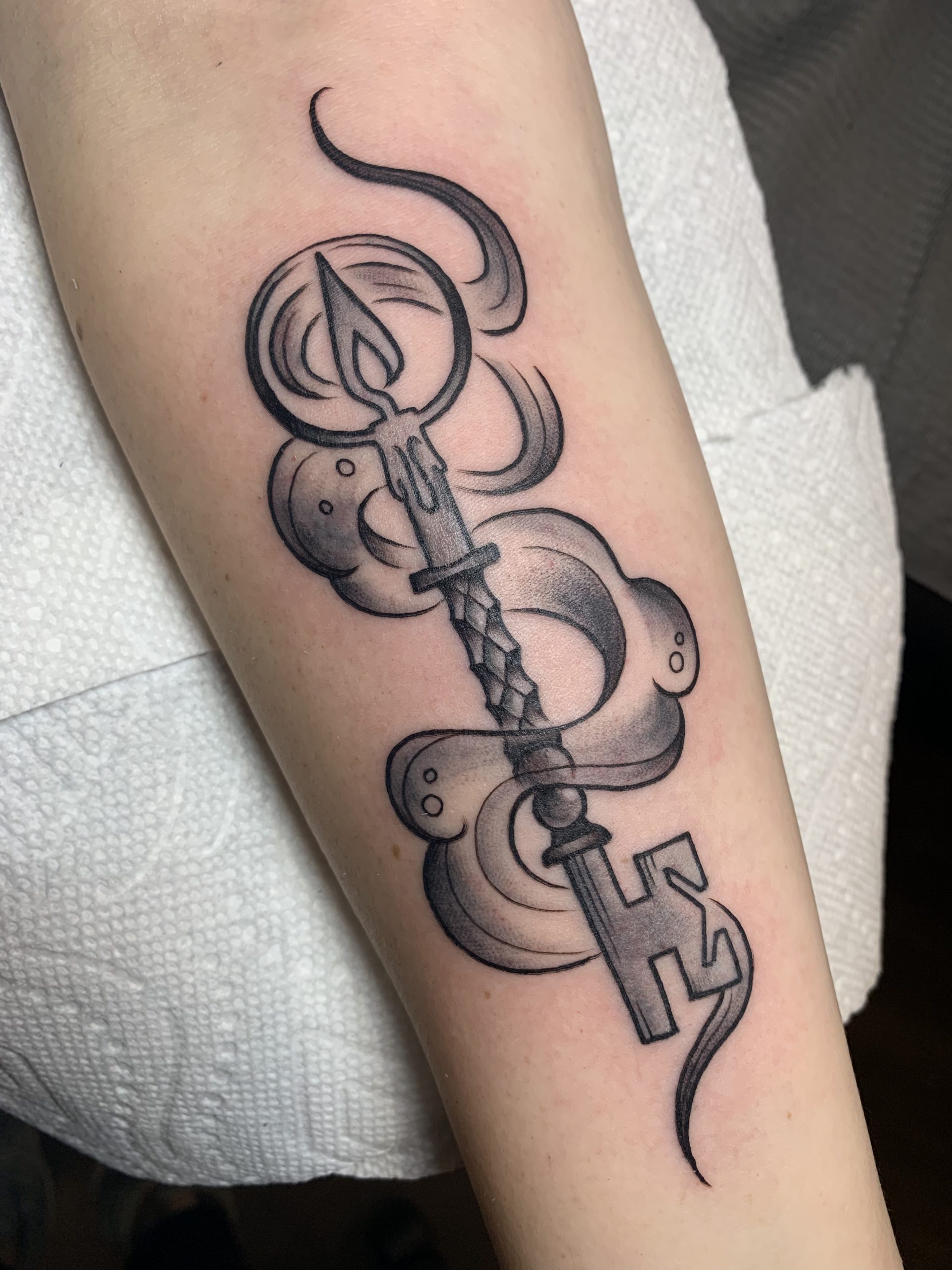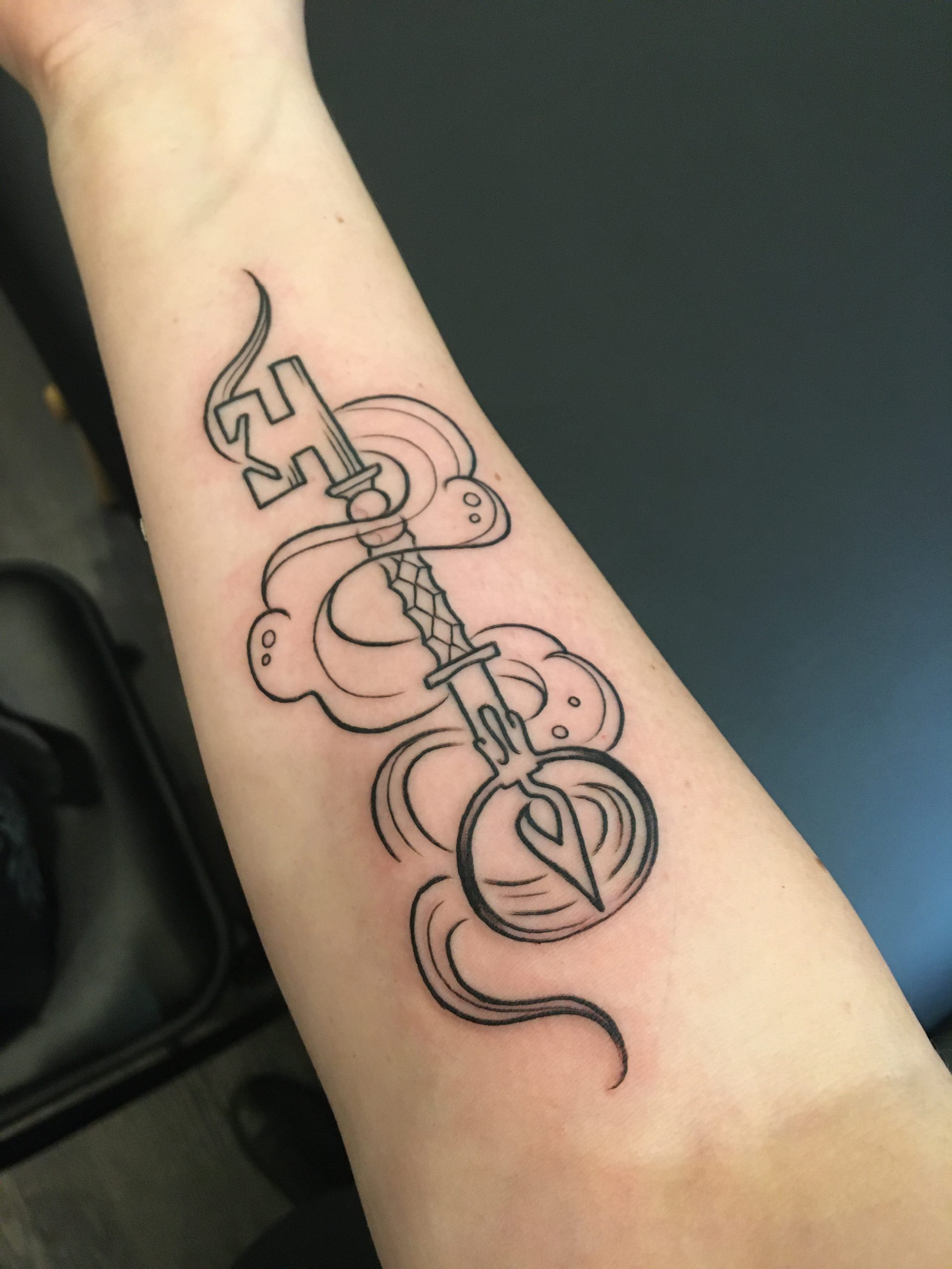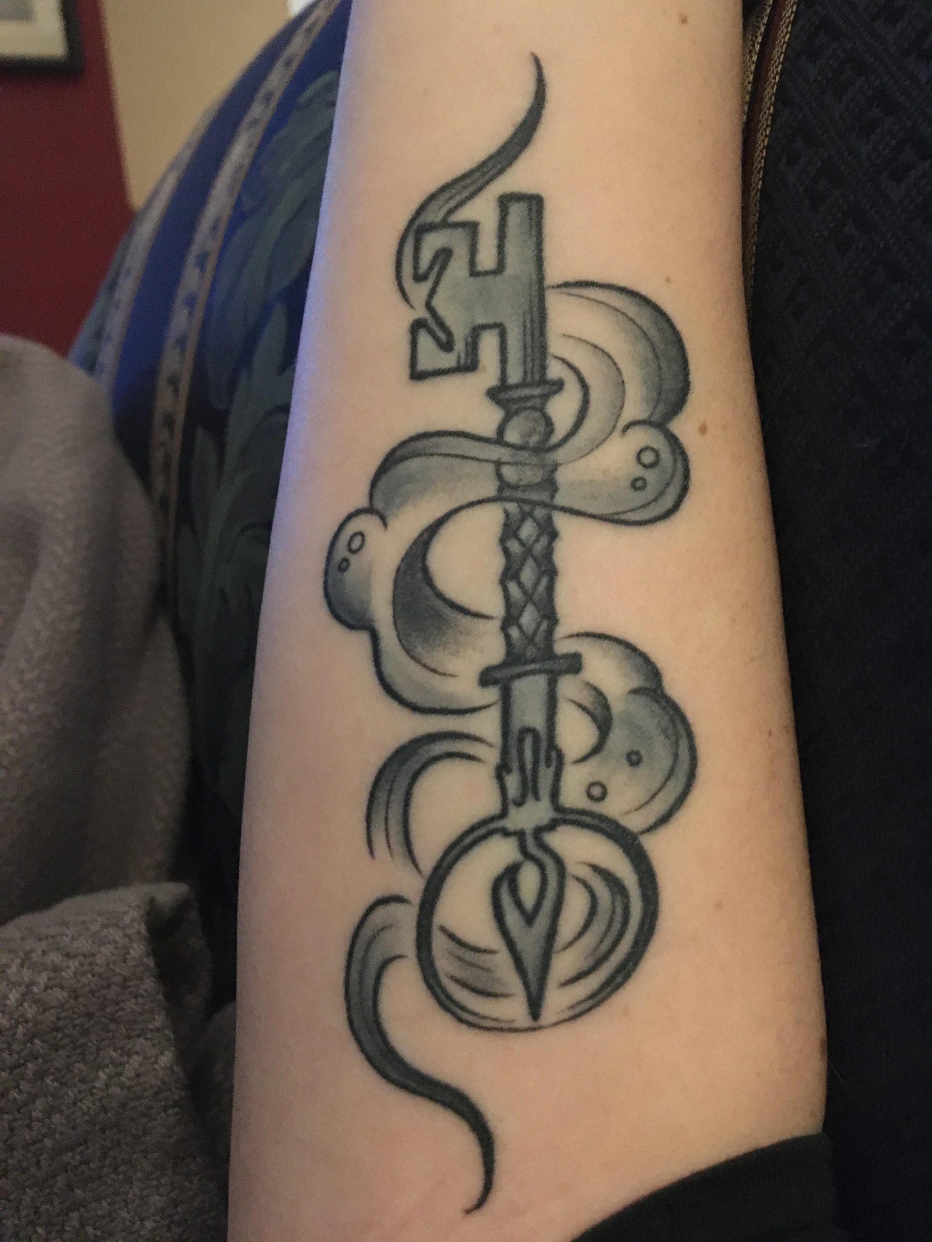 It’s been 2 years since I got my first tattoo. So I thought it would be fun to post some of the thoughts I’ve had on it. The tattoo is of the Shadow Key from the Locke & Key comics by Joe Hill. The tattoo was done by Kayla Faircloth at Scared Mandala. She did an amazing job.